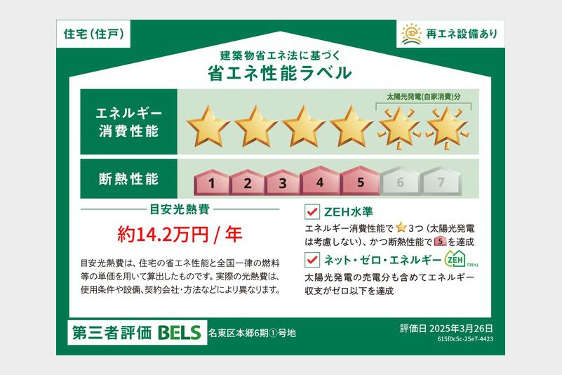 BELSとは「建築物省エネルギー性能表示制度」のことで、新築・既存の建築物の省エネ性能を、第三者評価機関が評価し認定する制度です。取得した家での暮らしは電気代の節約ができるだけでなく、住宅ローン減税や、国や自治体の省エネ住宅に対する補助金などを活用することもできます。