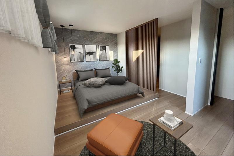 主寝室に3帖超の大型WIC+書斎コーナー(1号地)