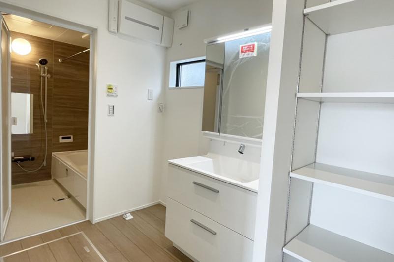 水栓に触れなくても手を差し出すだけでセンサーが感知し自動で水が出る自動吐水、ハンドル操作で手動吐水も可能です。三面鏡のミラーキャビネットはこれまで収納するのが難しかった大きなドライヤーやシェーバーが収納可能に! トレイの高さはお好みに合わせて調節できます。