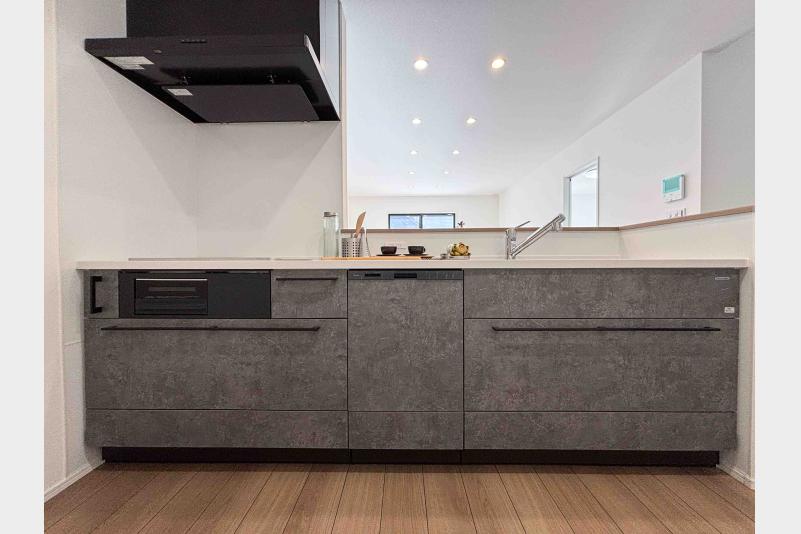 底面は傷が目立ちにくく、奥行きワイドなステンレスシンク。小物置き付きでシンク周りの小物をすっきり収納できます。ストック類や普段使わないものを分類できる機能的な収納のキャビネットはソフトクローズレール仕様で静かにピタッと閉まる、安全な引き出し。