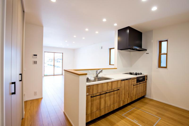 特殊な表面処理で汚れが付きにくく落としやすい床は、独自の断熱層で寒い季節でも冷たく感じにくいキレイサーモフロア。取り外して洗える便利なカウンターも採用しています。