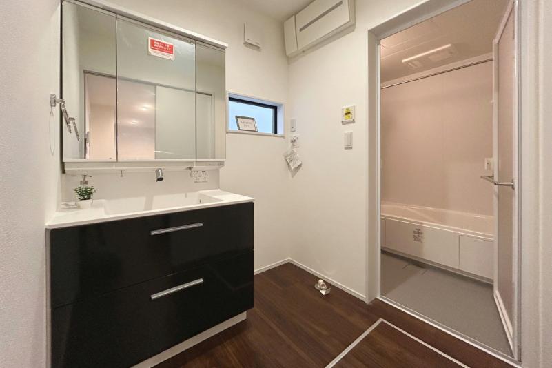 水栓に触れなくても手を差し出すだけでセンサーが感知し自動で水が出る自動吐水、ハンドル操作で手動吐水も可能です。三面鏡のミラーキャビネットはこれまで収納するのが難しかった大きなドライヤーやシェーバーが収納可能に! トレイの高さはお好みに合わせて調節できます。