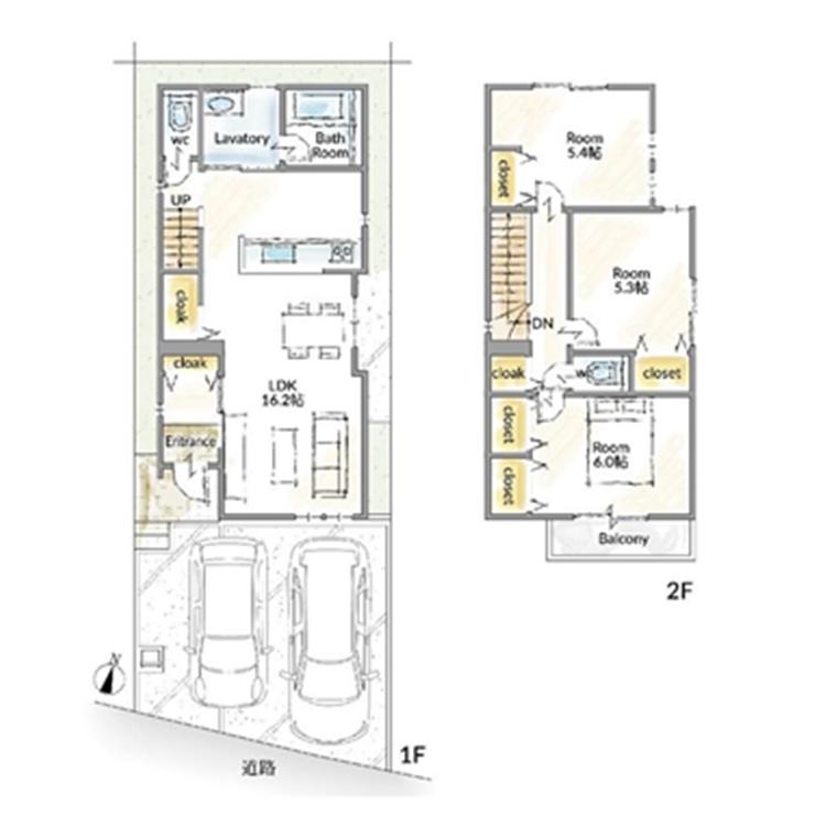 ウォークインクローゼットや階段下収納など、豊富な収納スペースを設けております。前面道路には歩道があり、お子様が玄関を飛び出しても心配ございません。南面のバルコニーにはよく陽が入り、洗濯物干しに最適です。