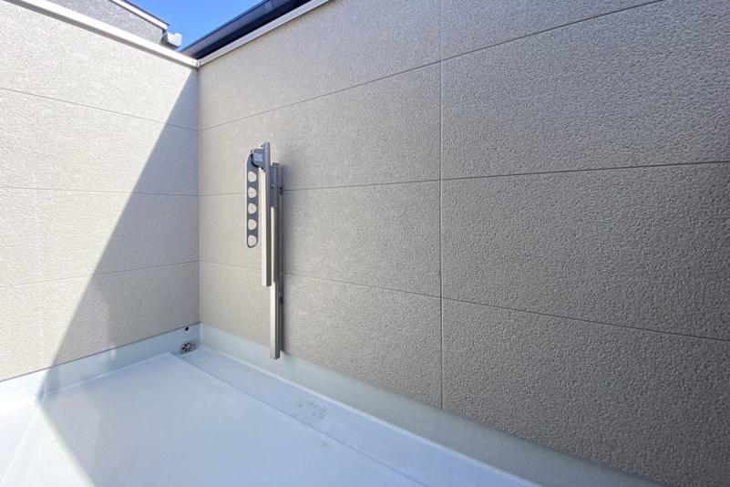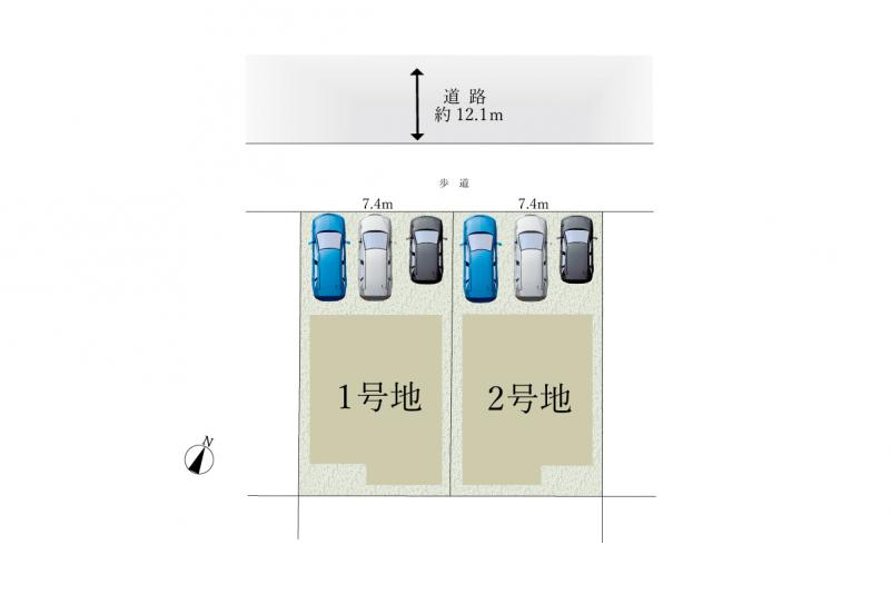 広々とした前面道路で、車の出し入れがスムーズ。さらに、歩道付きのため、小さなお子さまの通学や散歩・ジョギングの際も安心できる環境が整っています。
