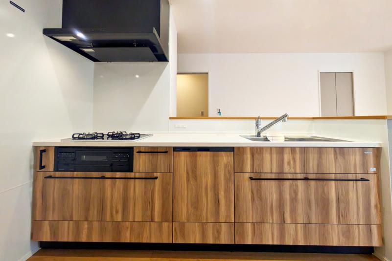 底面は傷が目立ちにくく、奥行きワイドなステンレスシンク。小物置き付きでシンク周りの小物をすっきり収納できます。ストック類や普段使わないものを分類できる機能的な収納のキャビネットはソフトクローズレール仕様で静かにピタッと閉まる、安全な引き出し。