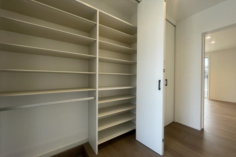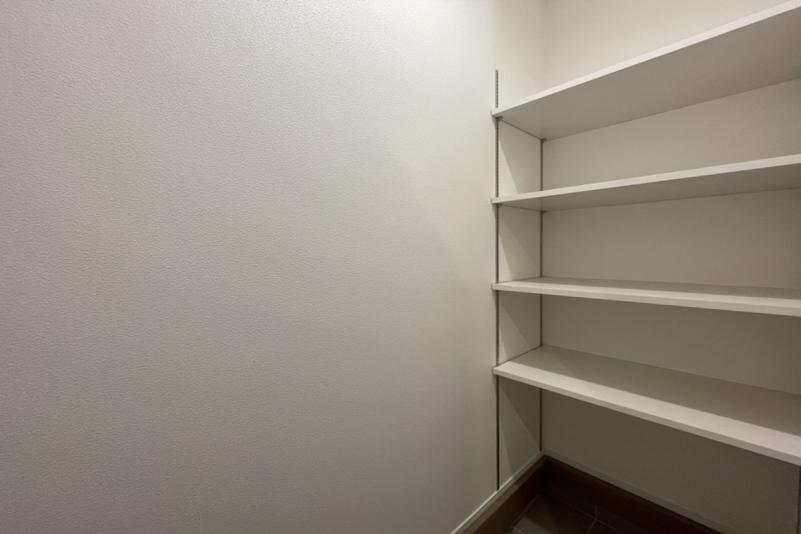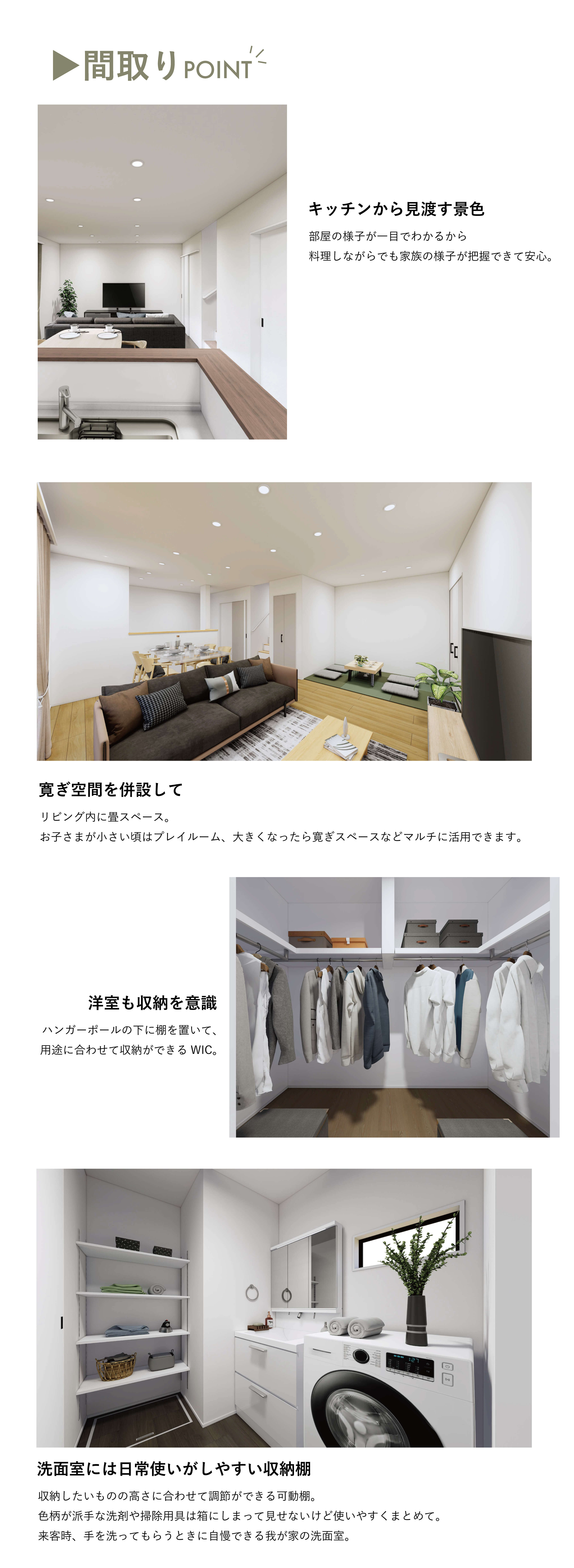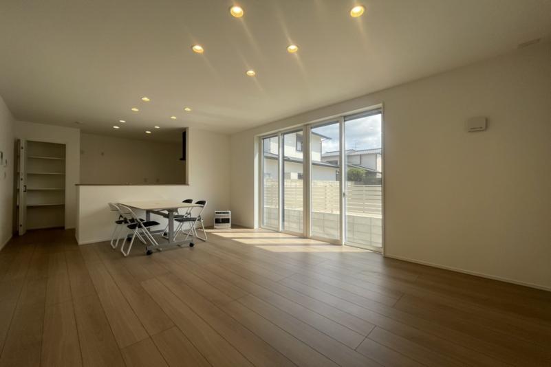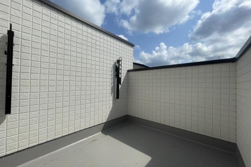 LDKに設けられた畳コーナーは、ゲストルームや小休憩を取るスペースとしてご利用いただけます。バルコニーを広めに設計しており、洗濯物干しの他お子様用のプールで遊ぶことも可能です。