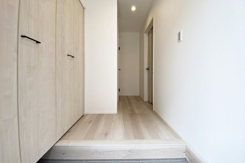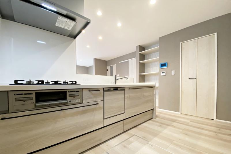 全体の色味や素材に統一感を持たせながら、細部にさりげない個性を散りばめたデザインが魅力のこの住まいは、グレイッシュカラーやホワイトカラーをベースに、天井材やアクセントクロス、キッチンなど空間ごとに異なる質感と色合いを巧みに取り入れています。