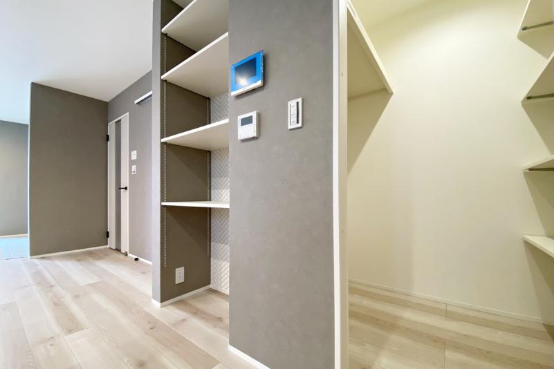 また暮らしやすさを支える大容量収納設設計を採用。キッチン横の大型パントリーには、調味料や保存食品、調理家電までしっかり収まります。散らかりやすいキッチンまわりもすっきり片付き、毎日の家事がぐんと快適になります。