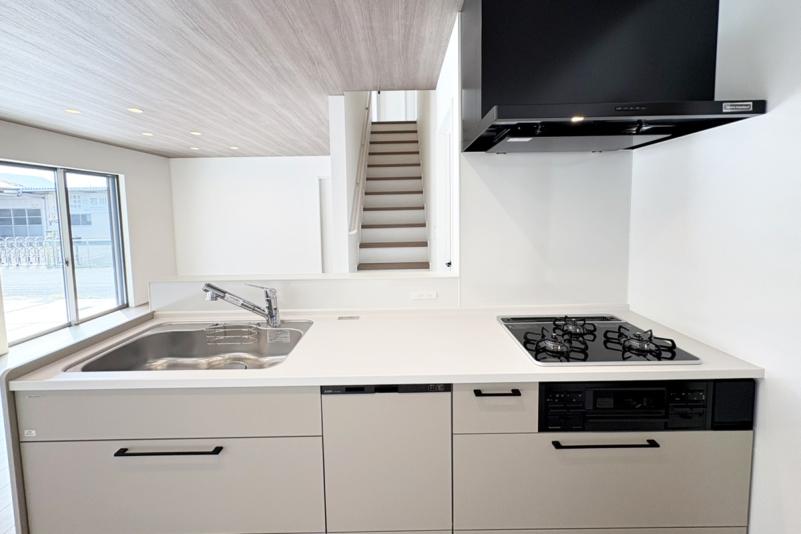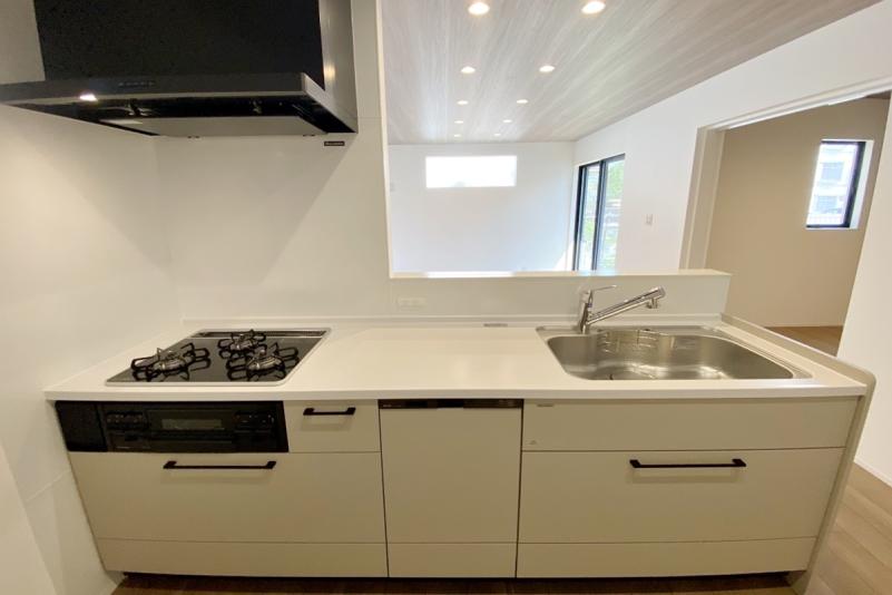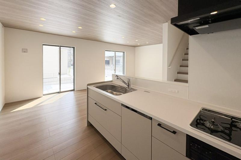 底面は傷が目立ちにくく、奥行きワイドなステンレスシンク。小物置き付きでシンク周りの小物をすっきり収納できます。ストック類や普段使わないものを分類できる機能的な収納のキャビネットはソフトクローズレール仕様で静かにピタッと閉まる、安全な引き出し。