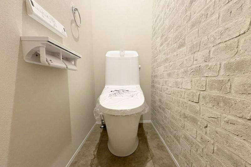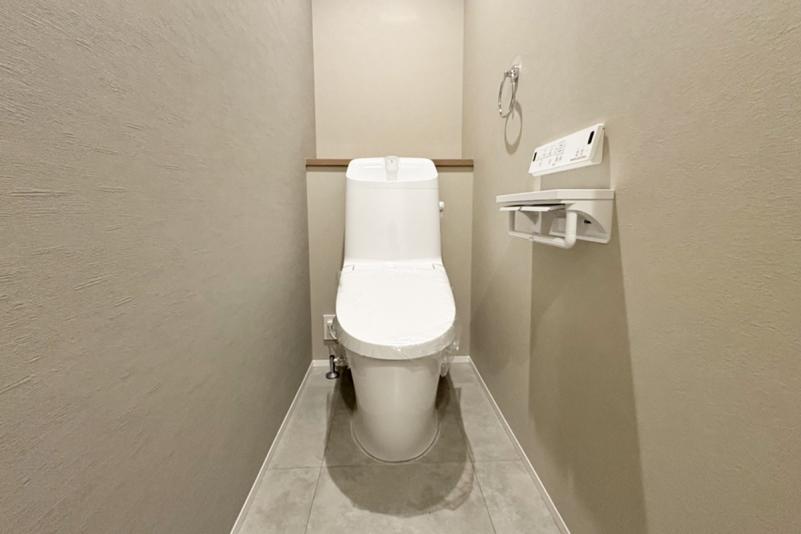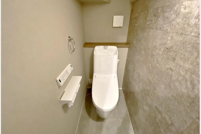 手洗いは吐水口とボウルが滑らかにつながったデザイン。便座もシームレスで便座裏には防汚素材を使用し、お掃除のしやすいフチのないデザインとなっています。また、パワーストリーム洗浄で強力な水流が便器鉢の中のすみずみまでしっかりと回り、少ない水で高い洗浄力を発揮します。