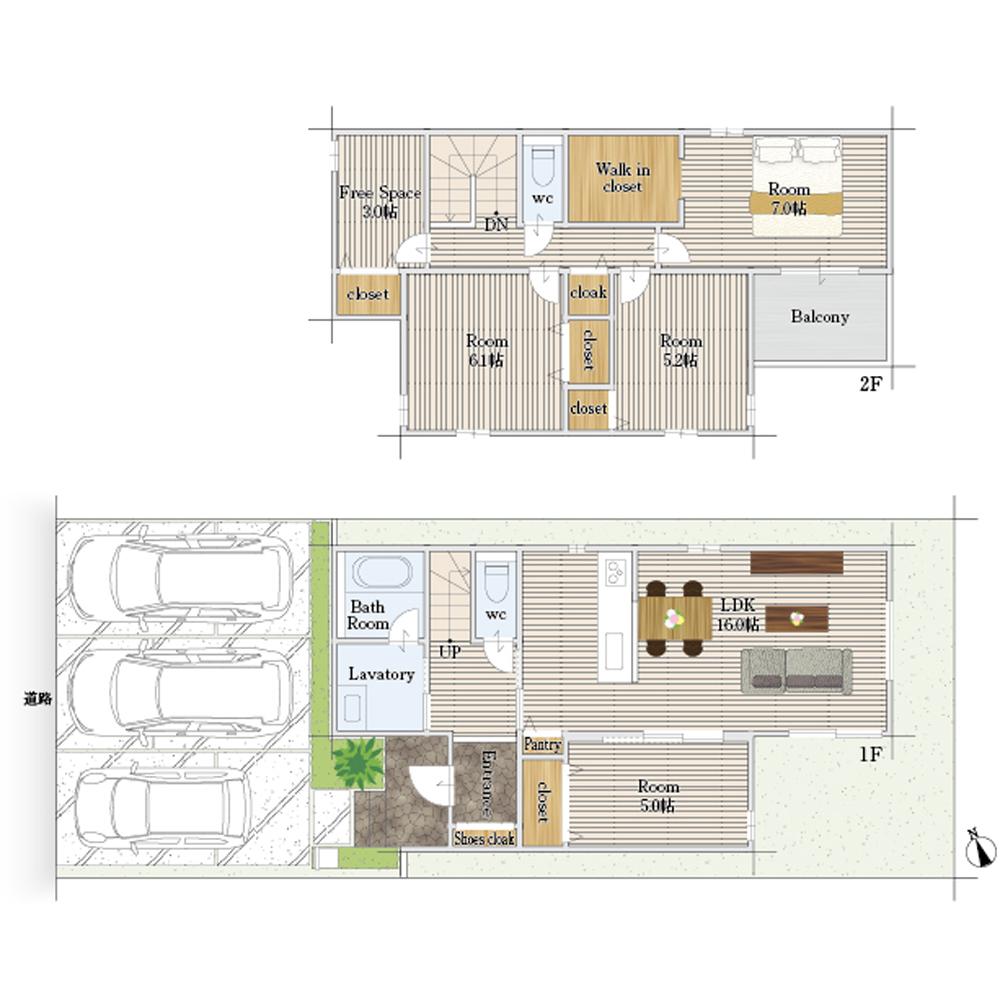 | 構造 | 木造2階建(在来工法) | 駐車場 | 3台(普2台+軽1台) |