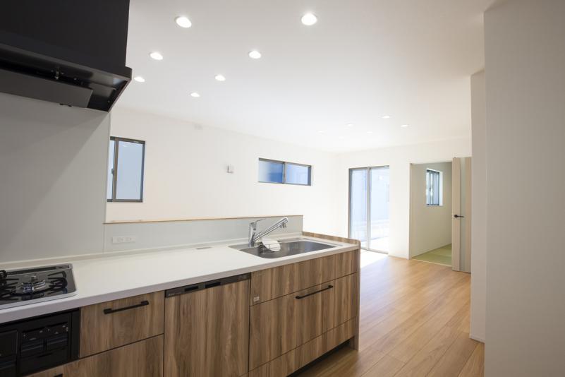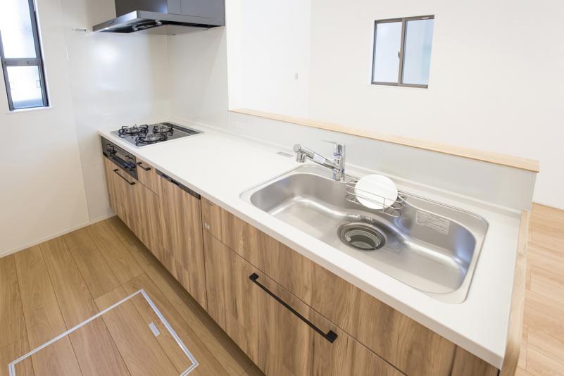 食洗機付きのシステムキッチンで家事時間短縮!家族時間が増えそうですね。
