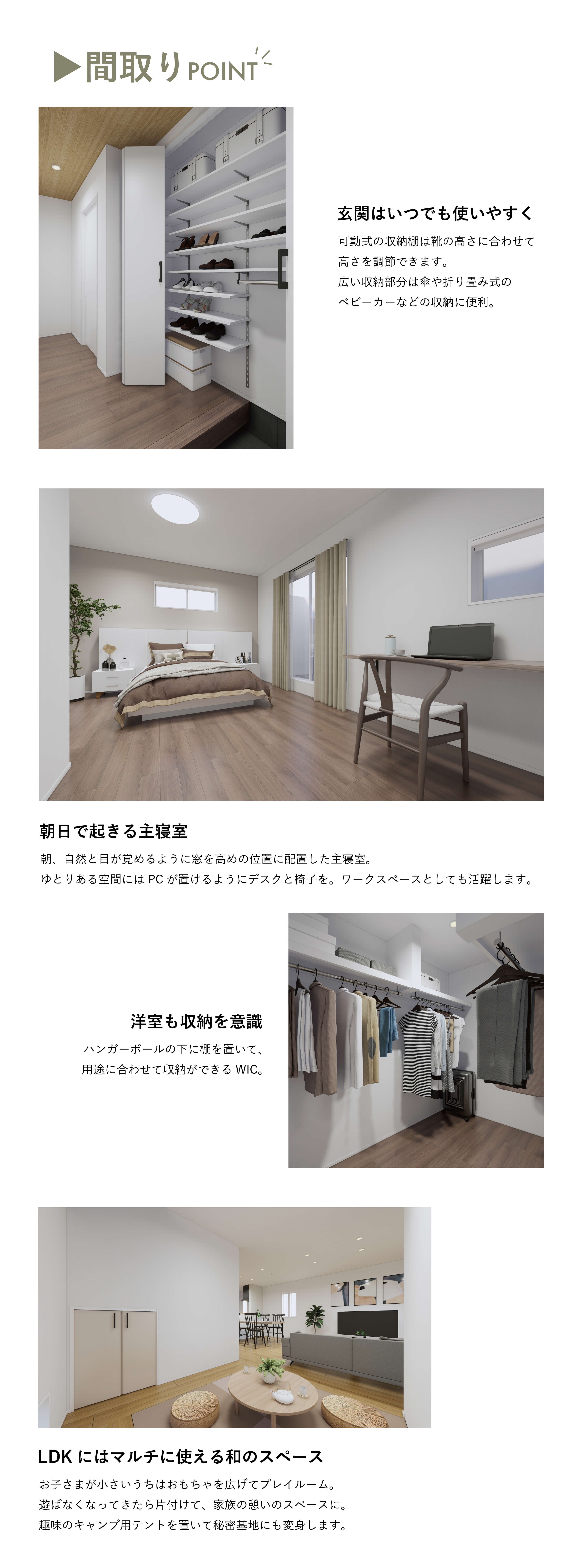 1階にはLDK+洋室もしくは畳コーナーを設けております。「ゲストルーム」「お子様とのくつろぐ空間」など使い勝手◎。最寄りバス停「桧原三ツ角」停まで徒歩5分。そこから乗り換えなしで博多駅や天神方面へ約30~40分で移動可能。