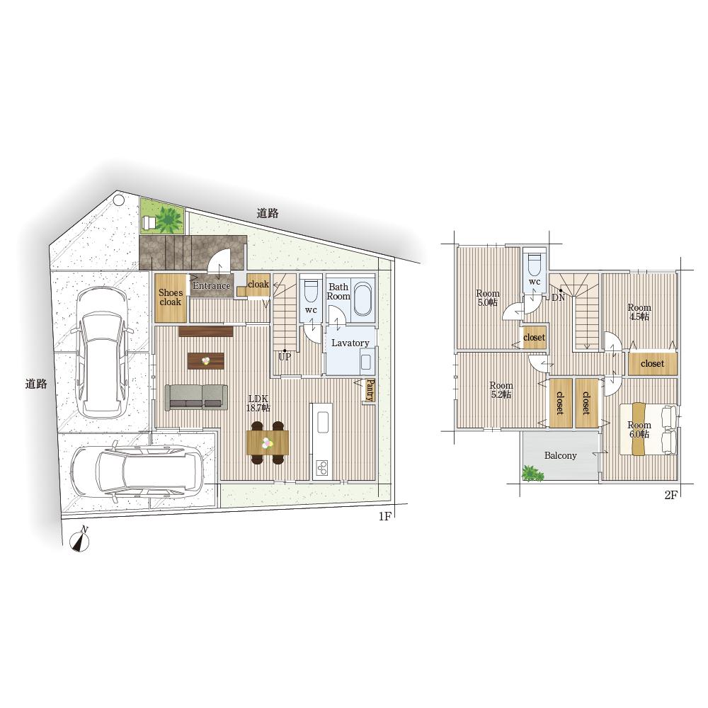 | 構造 | 木造2階建(在来工法) | 駐車場 | 2台(軽2台) |