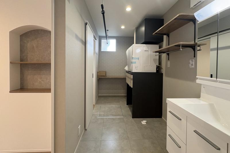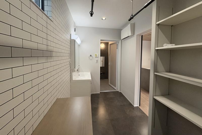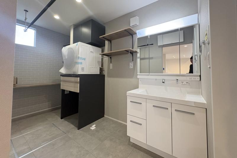 ・洗面脱衣室には洗濯物も畳めるカウンターテーブル付き