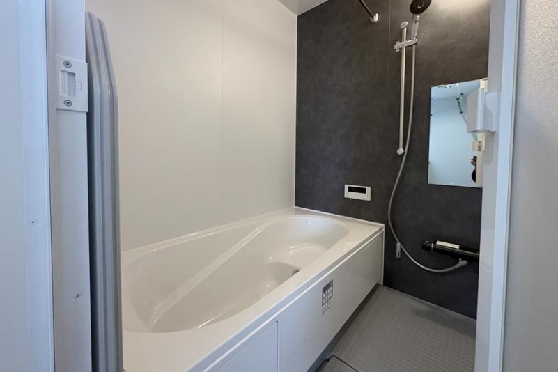 水滴にたっぷりの空気を含ませることで、ボリュームのある浴び心地と節水の両立を実現したシャワーヘッド。特殊な表面処理で汚れが付きにくく落としやすい床は、独自の断熱層で寒い季節でも冷たく感じにくいキレイサーモフロア。取り外して洗える便利なマグネットシェルフも採用しています。