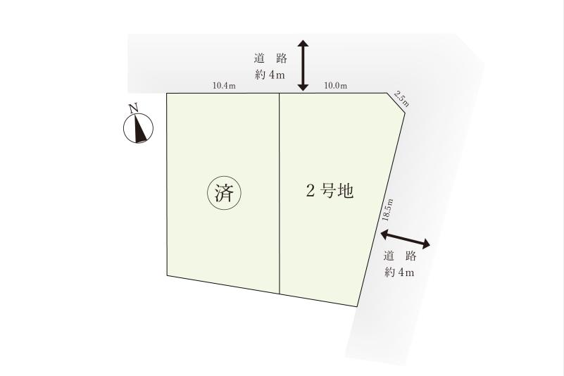 道路/北側幅員約4m、東側幅員約4mの公道に接する