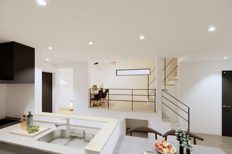またキッチンからは和室やリビングが見渡せるため、調理中でも家族の様子を確認できる、家事効率と安心感を両立した暮らしやすい間取りになっています。