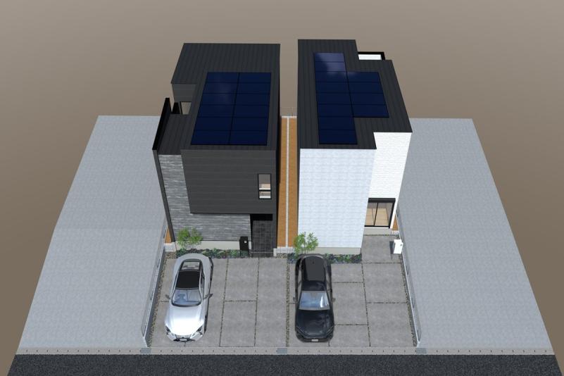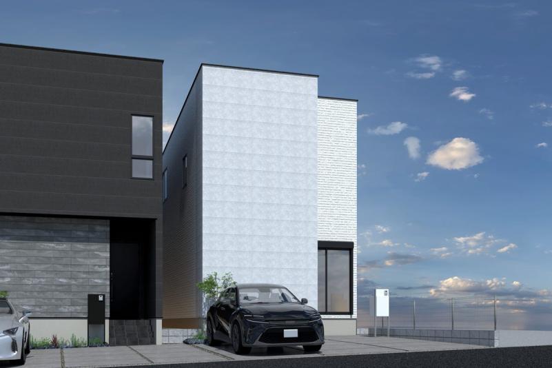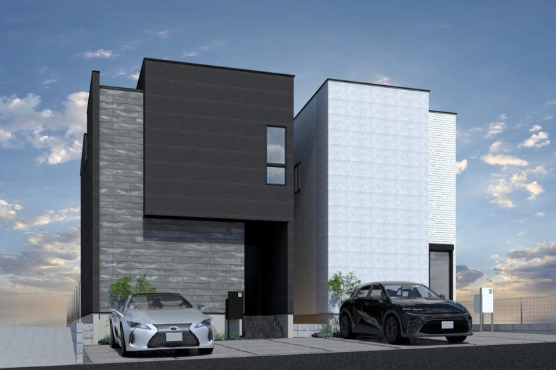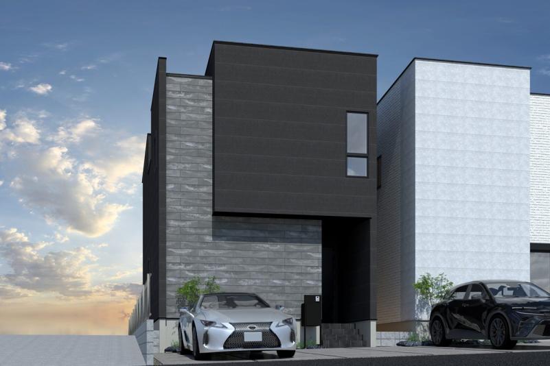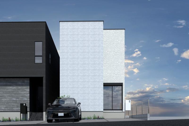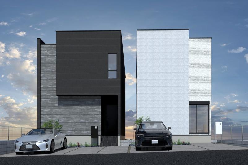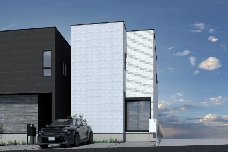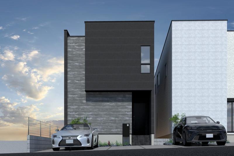 ホワイトとブラックを基調としたスタイリッシュな外観が印象的な本物件。シンプルながらもシャープなデザインで、街並みの中でもひと際目を引く存在感を放ちます◎