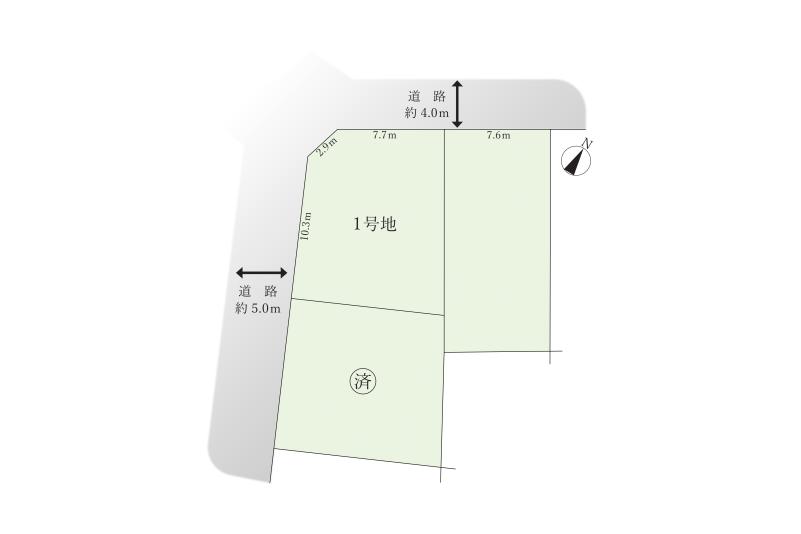 道路/西側幅員約5.0m、北側幅員約4.0mの公道に接する