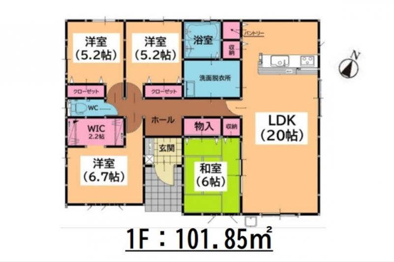 | 土地面積 | 263.17m²(79.6坪) | 建物面積 | 101.85m²(30.8坪) |